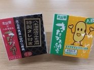 ①県内産大豆を100%使用した、「きたかみ納豆」の製造販売。