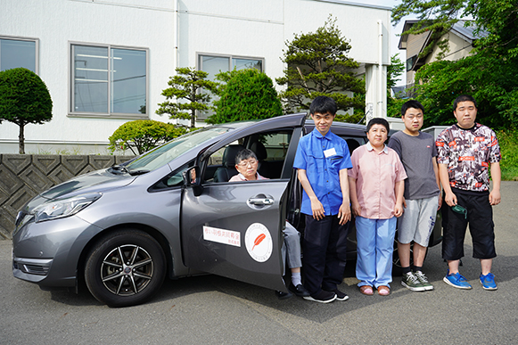 2021/6 赤い羽根共同募金会様から助成により福祉車両を購入することが出来ました。大切に利用させていただきます。利用者より「乗りやすいし乗り心地が良くてとても良いです。乗り降りが楽で納品に出かけやすくなりました。かっこいい車ありがとうございます。大切にします!」